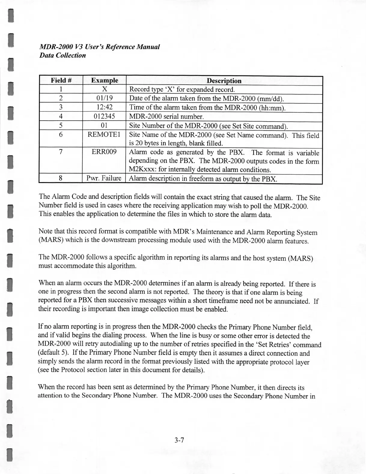 depending on the PBX. The MDR-2000 outputs codes in the form