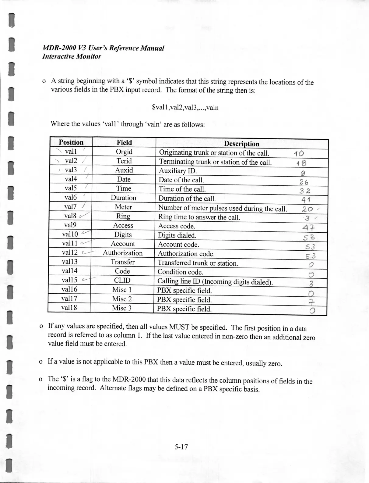 ' is a flag to the MDR-2000 that this data reflects the column positions