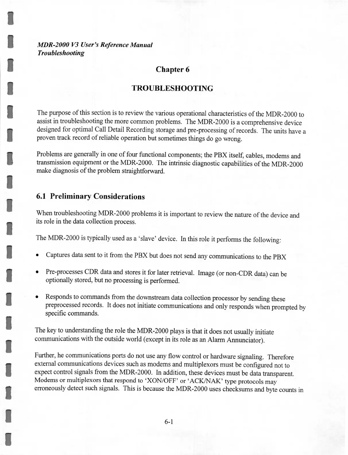 assist in troubleshooting the more common problems. The MDR-2000 is a comprehensive device