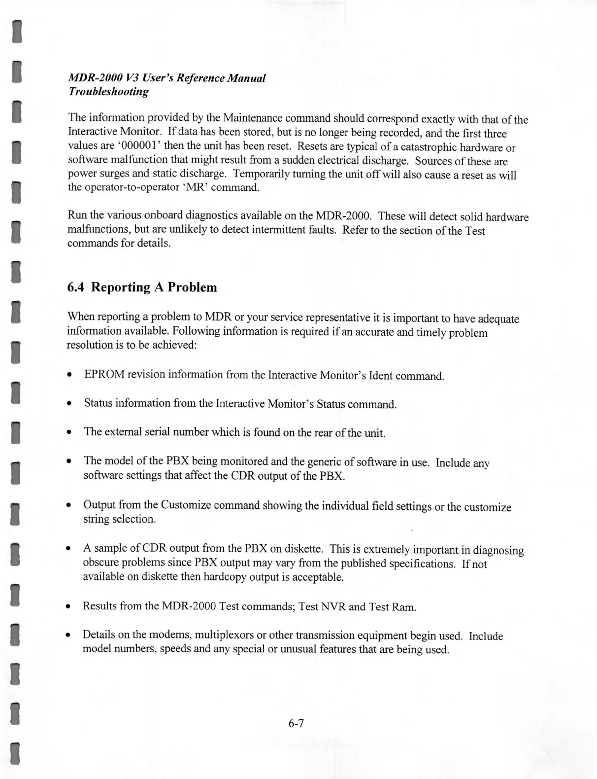 When reporting a problem to MDR or your service representative it
