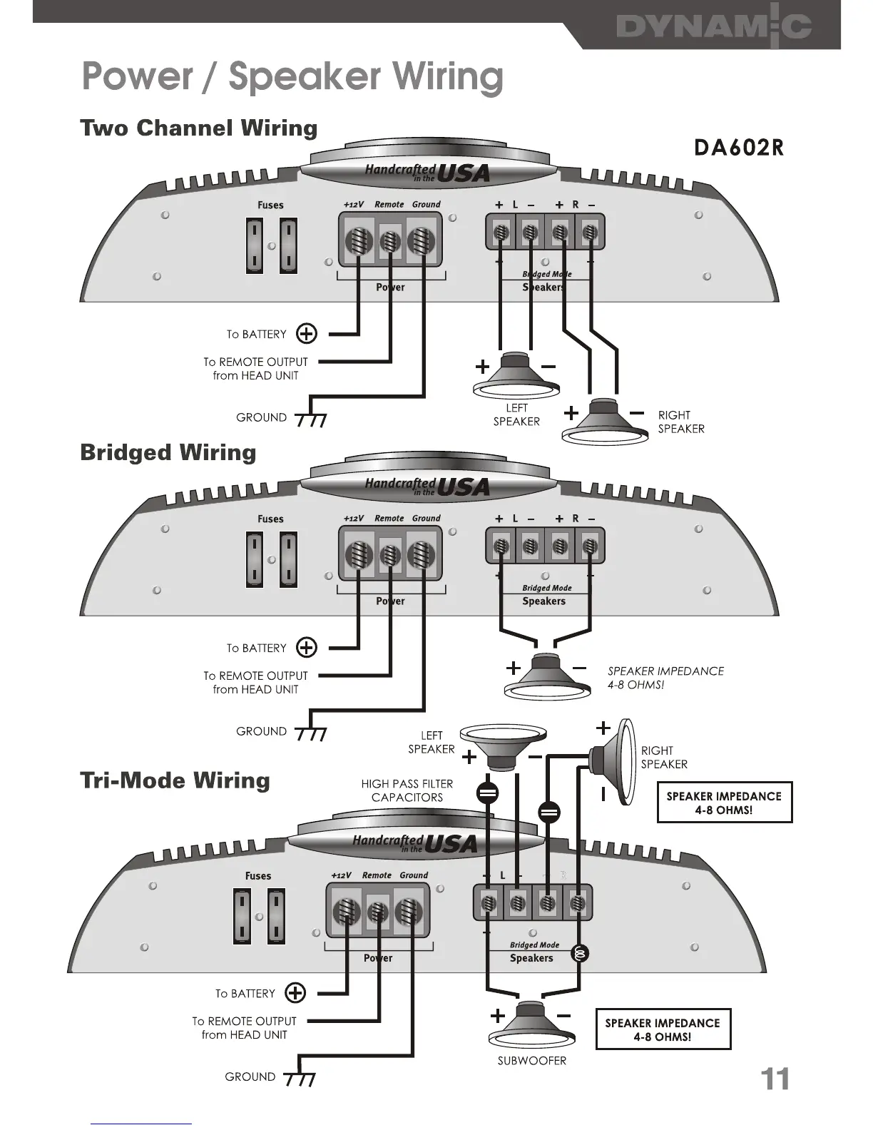 MDS DA201R - Power; Speaker Wiring; DA602 R Power and Speaker Wiring