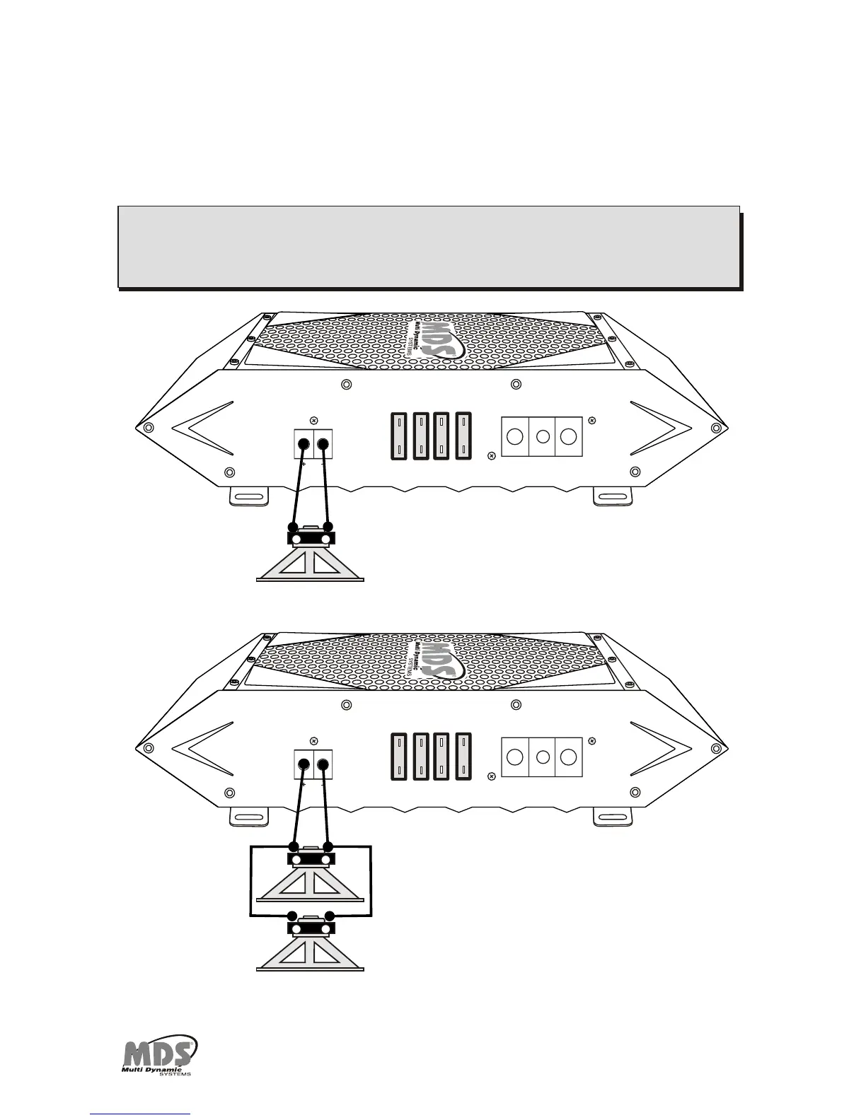 CAUTION! The amplifier must see a 2 Ohm load or higher. Any lower than 2 Ohms will