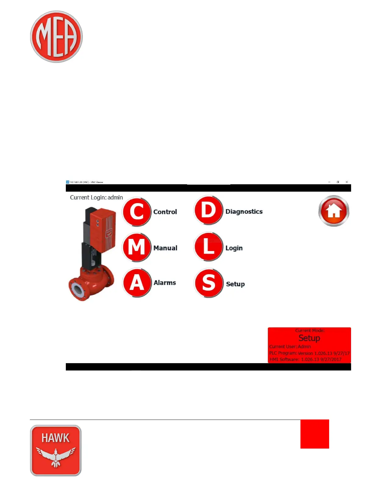 1) Power the Hawk Control Enclosure and confirm the HMI boots up. Press the Login button and