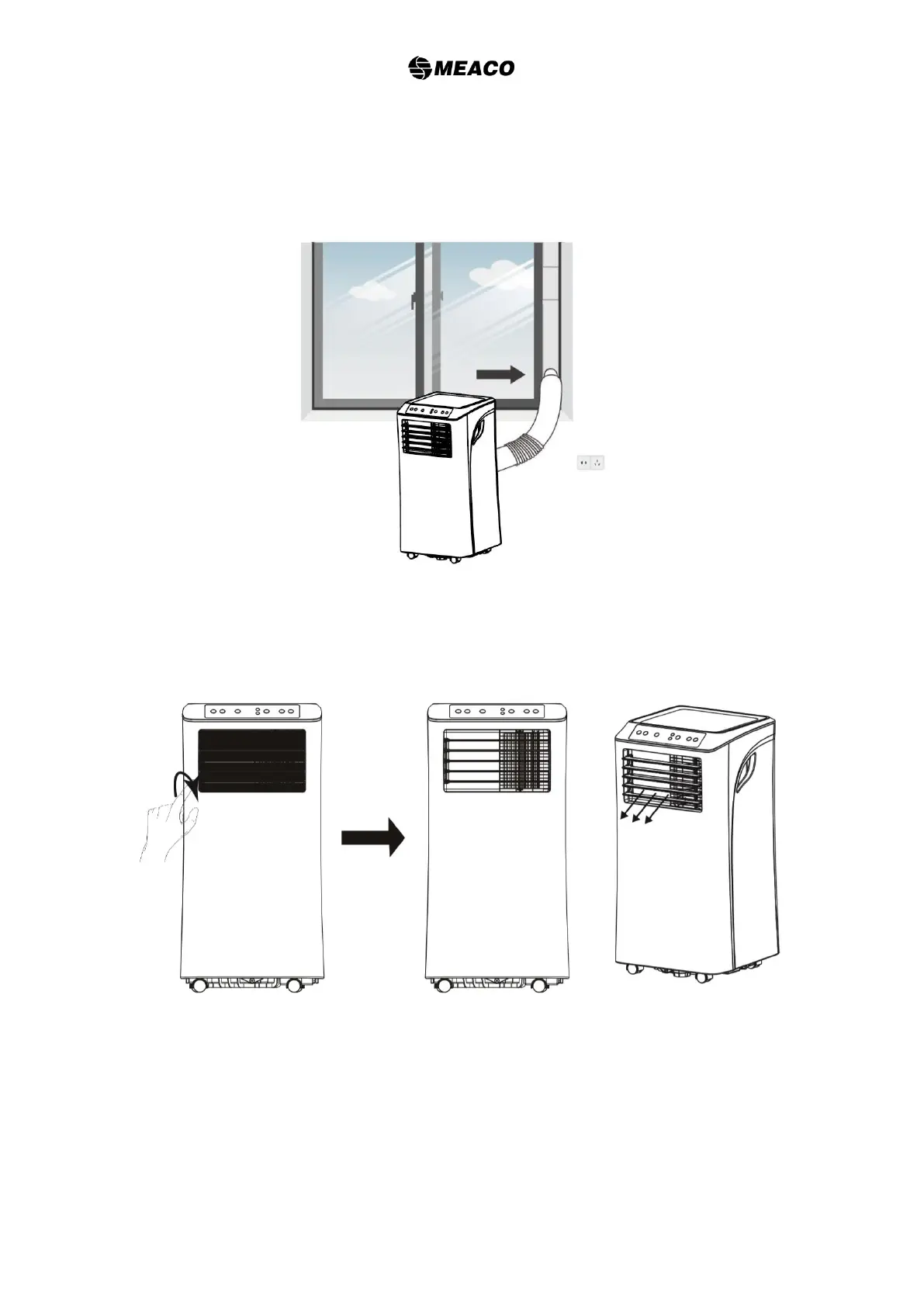Step 7: Manually open the louvre on the front of the portable air conditioner. The internal