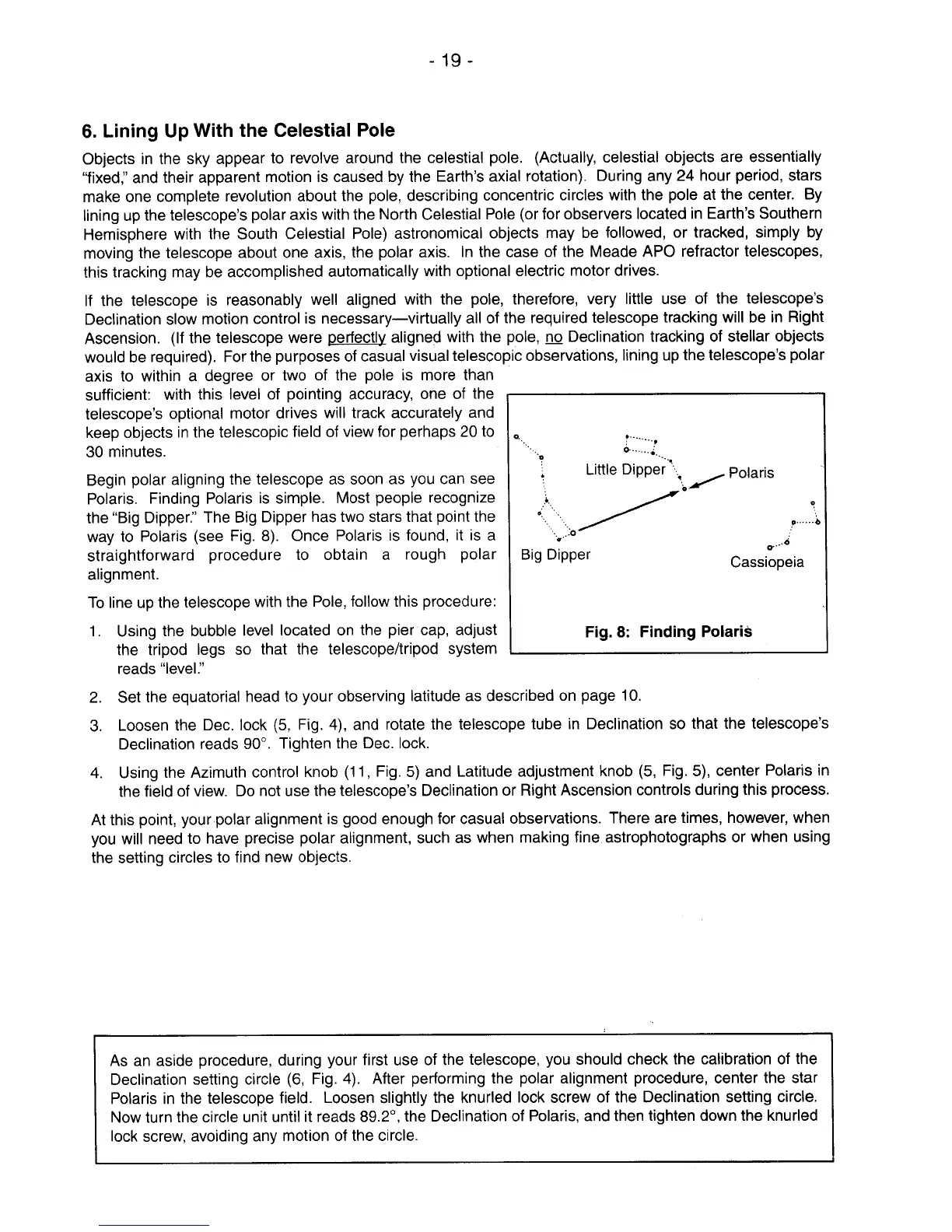 Meade 102ED - Lining up with the Celestial Pole