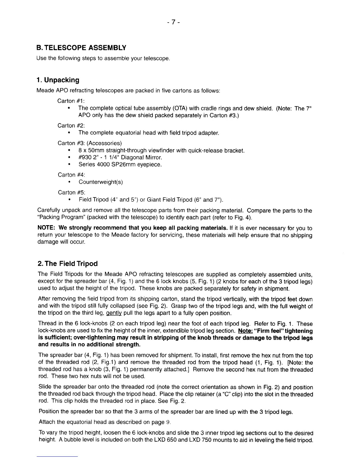 Meade 102ED - Telescope Assembly; Unpacking; The Field Tripod