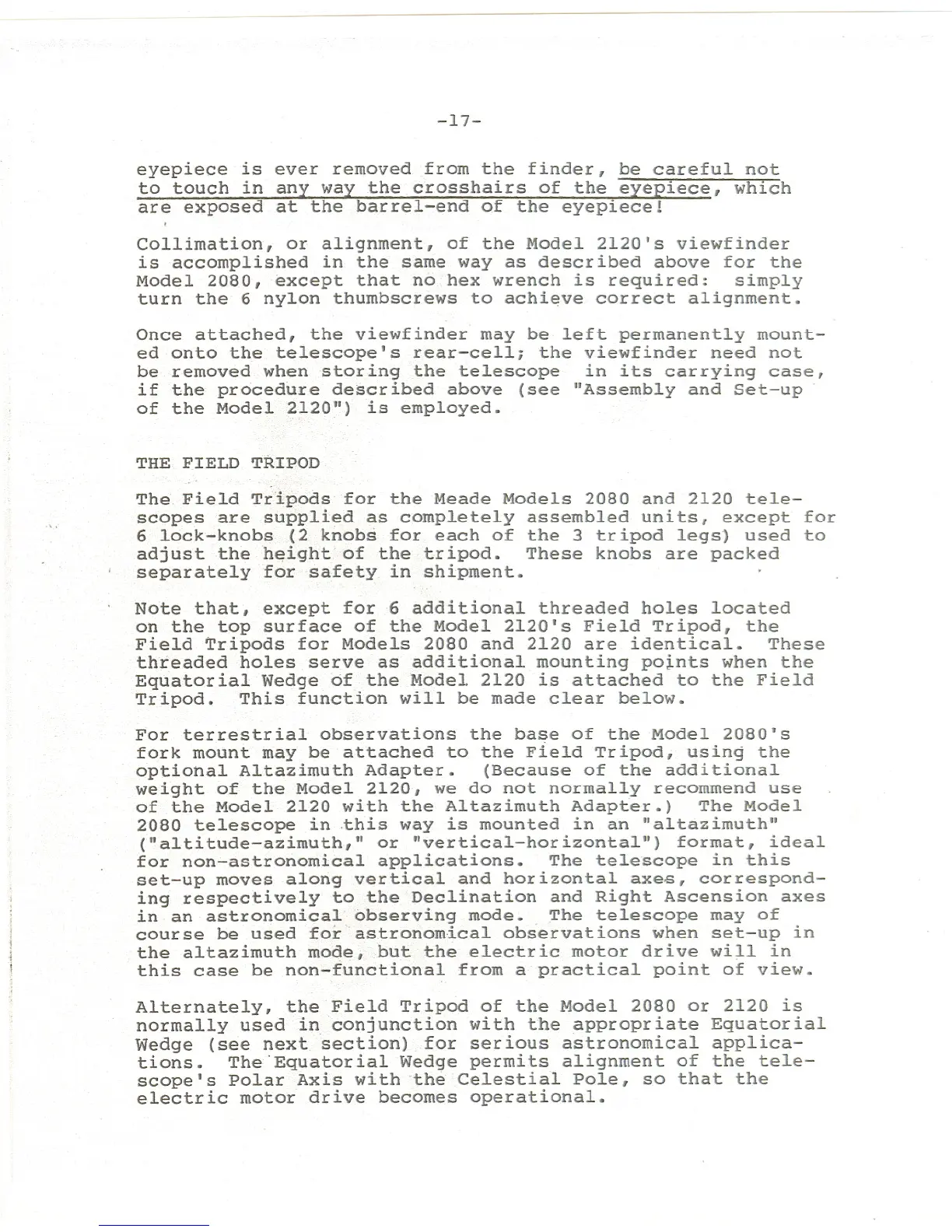 The.Field Tr'ipods for the Meade Models 2080 and 2120 tele-