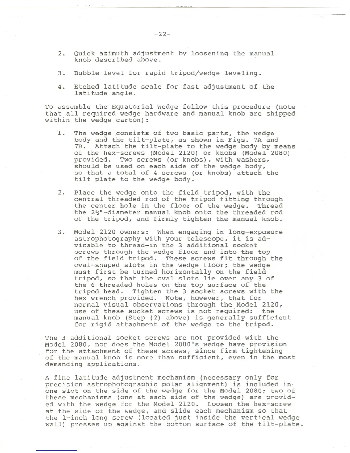 Model 2080, nor does the Model 2080's wedge have provision