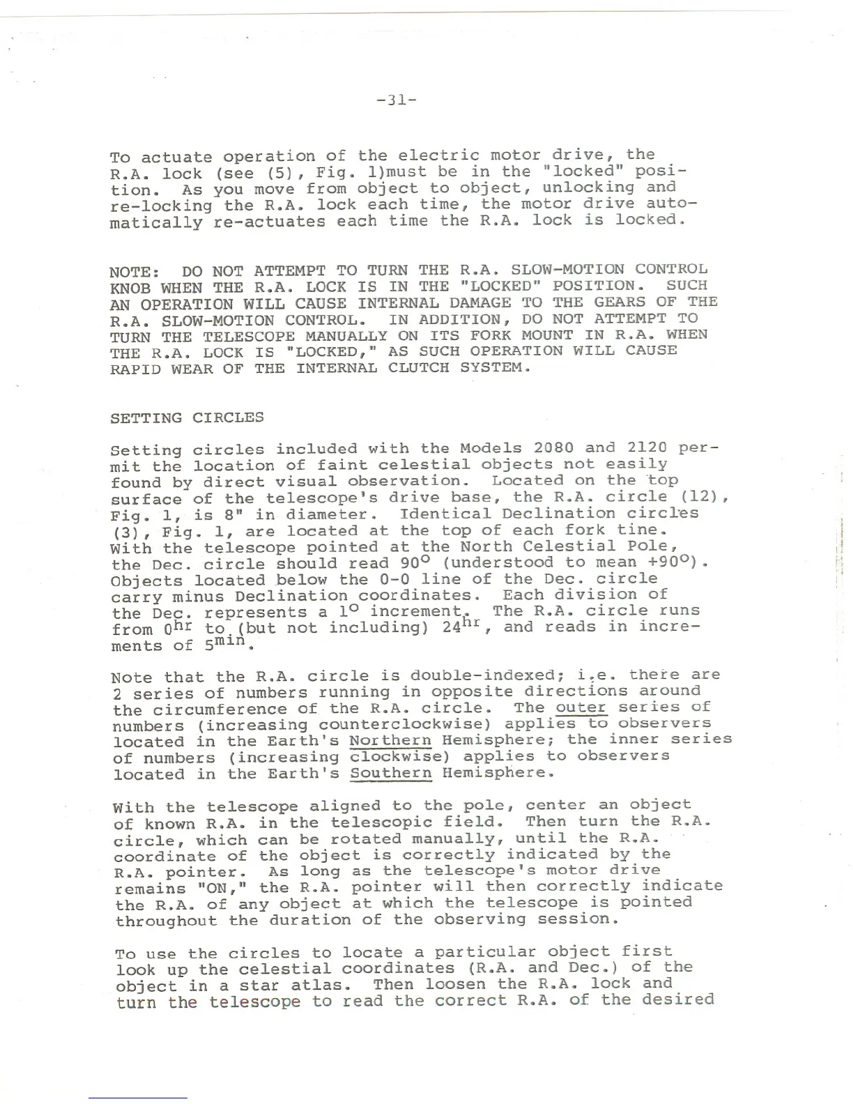 NOTE: DO NOT ATTEMPT TO TURN THE R.A. SLOW-MOTION CONTROL