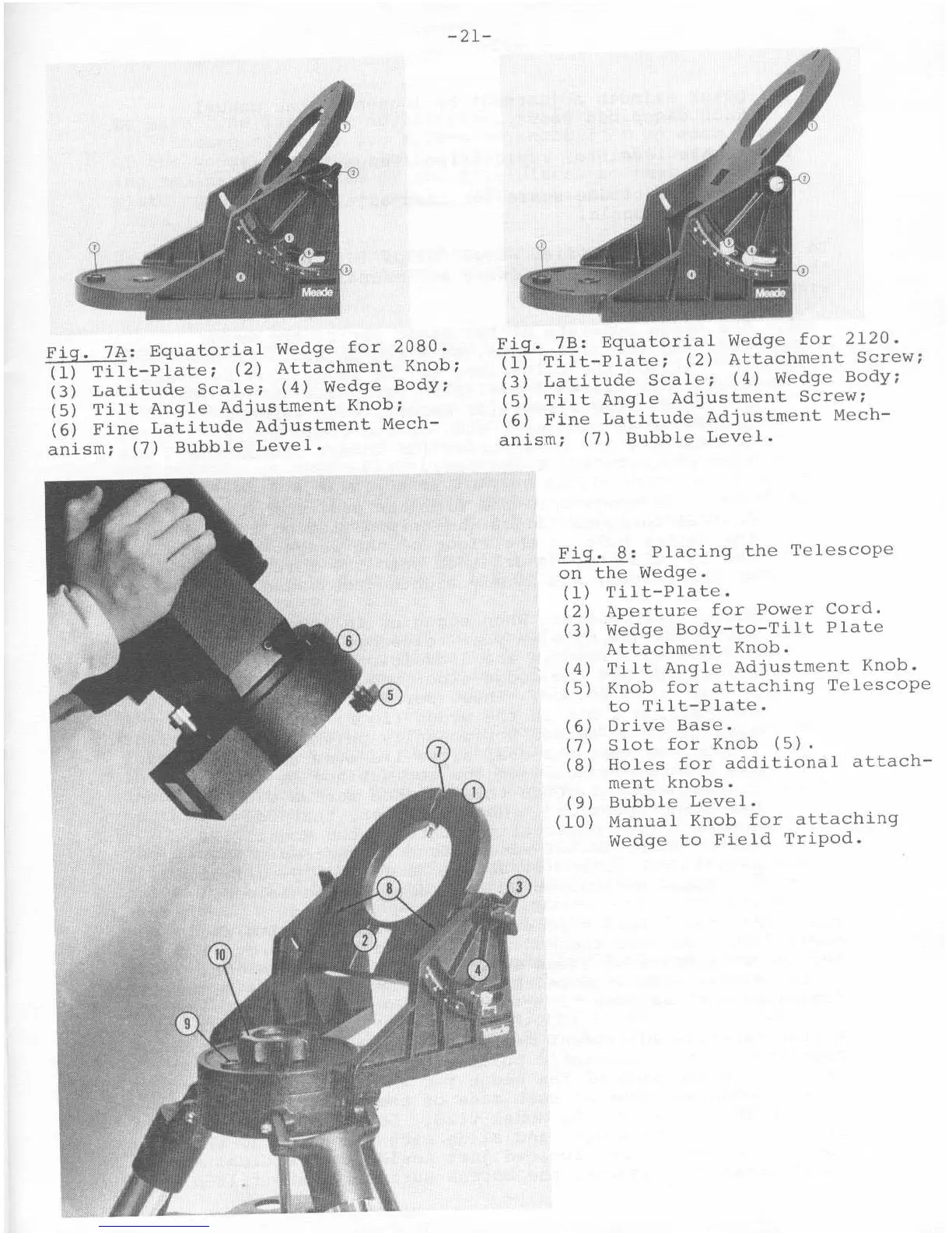Meade 2120 - Equatorial Wedge for 2080; Equatorial Wedge for 2120; Placing the Telescope on the Wedge