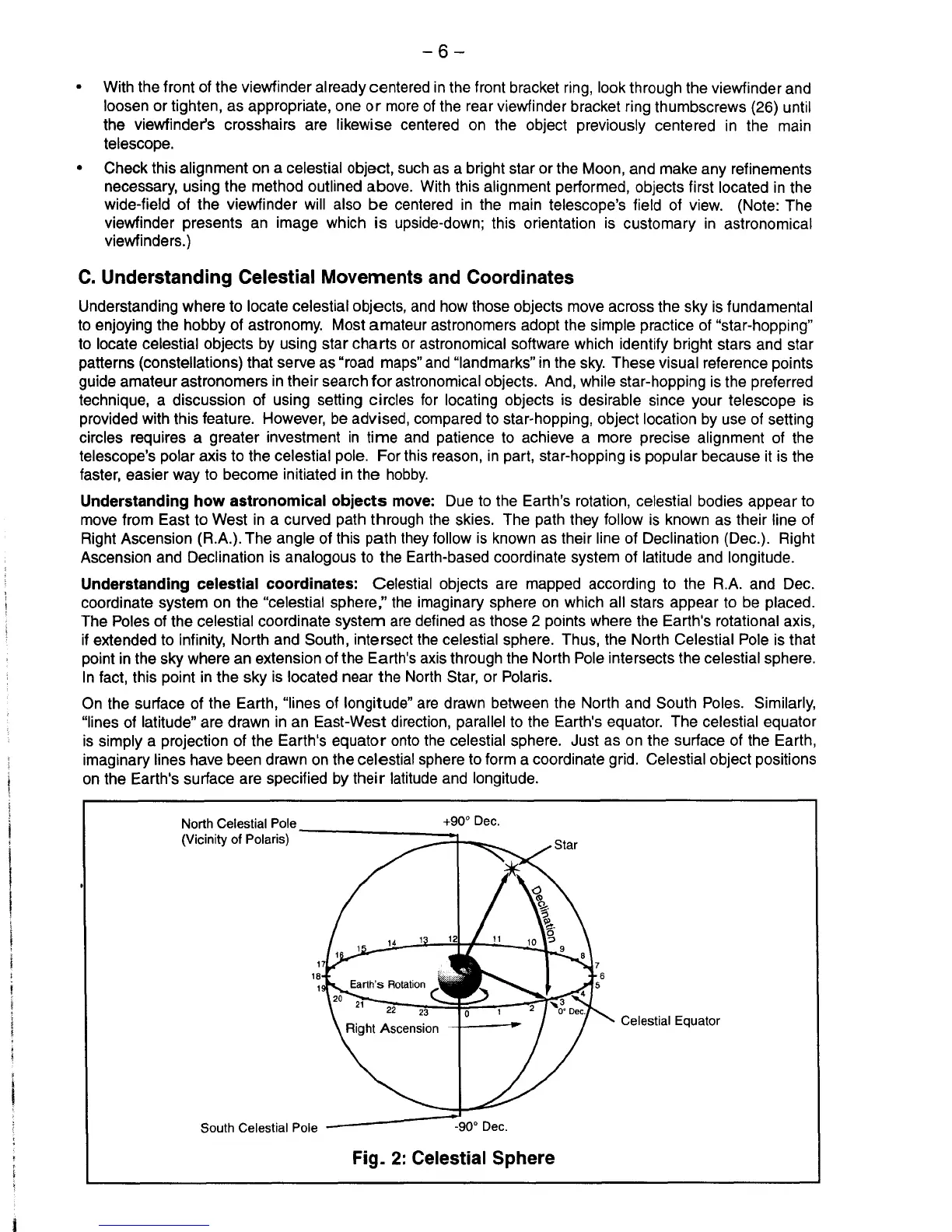 Meade 395 - Celestial Movements and Coordinates; Viewfinder Alignment Verification; Understanding Astronomical Object Motion; Understanding Celestial Coordinates