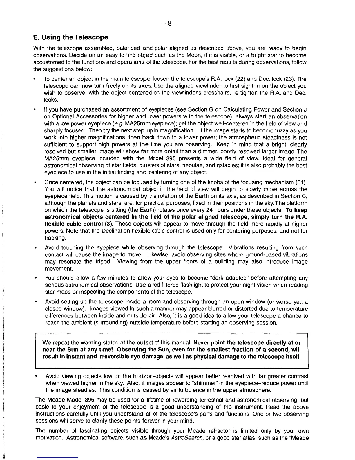 Meade 395 - Using the Telescope; Centering Objects; Eyepiece Selection and Magnification; Tracking Celestial Objects
