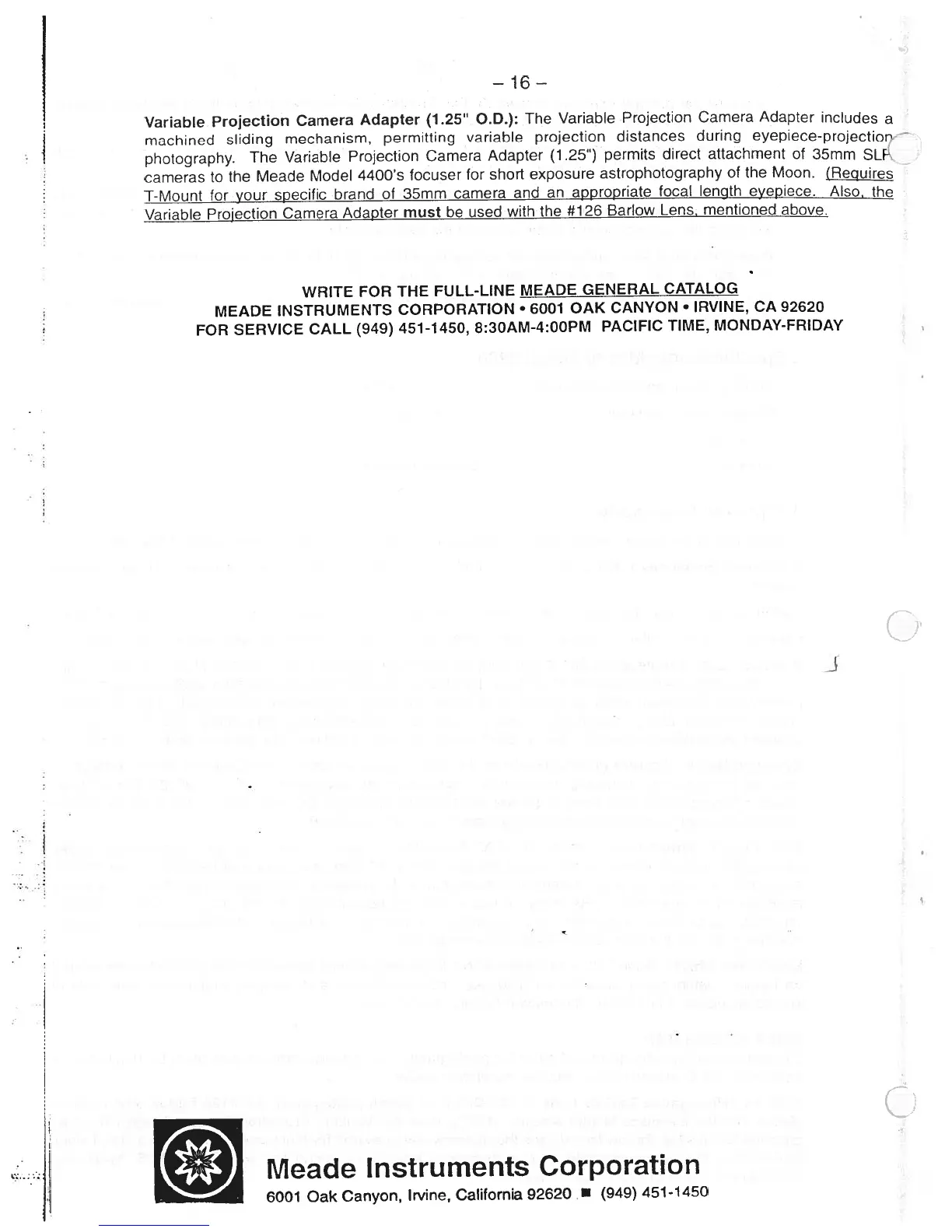 Meade 4400 - Variable Projection Camera Adapter (1.25 O.D.)