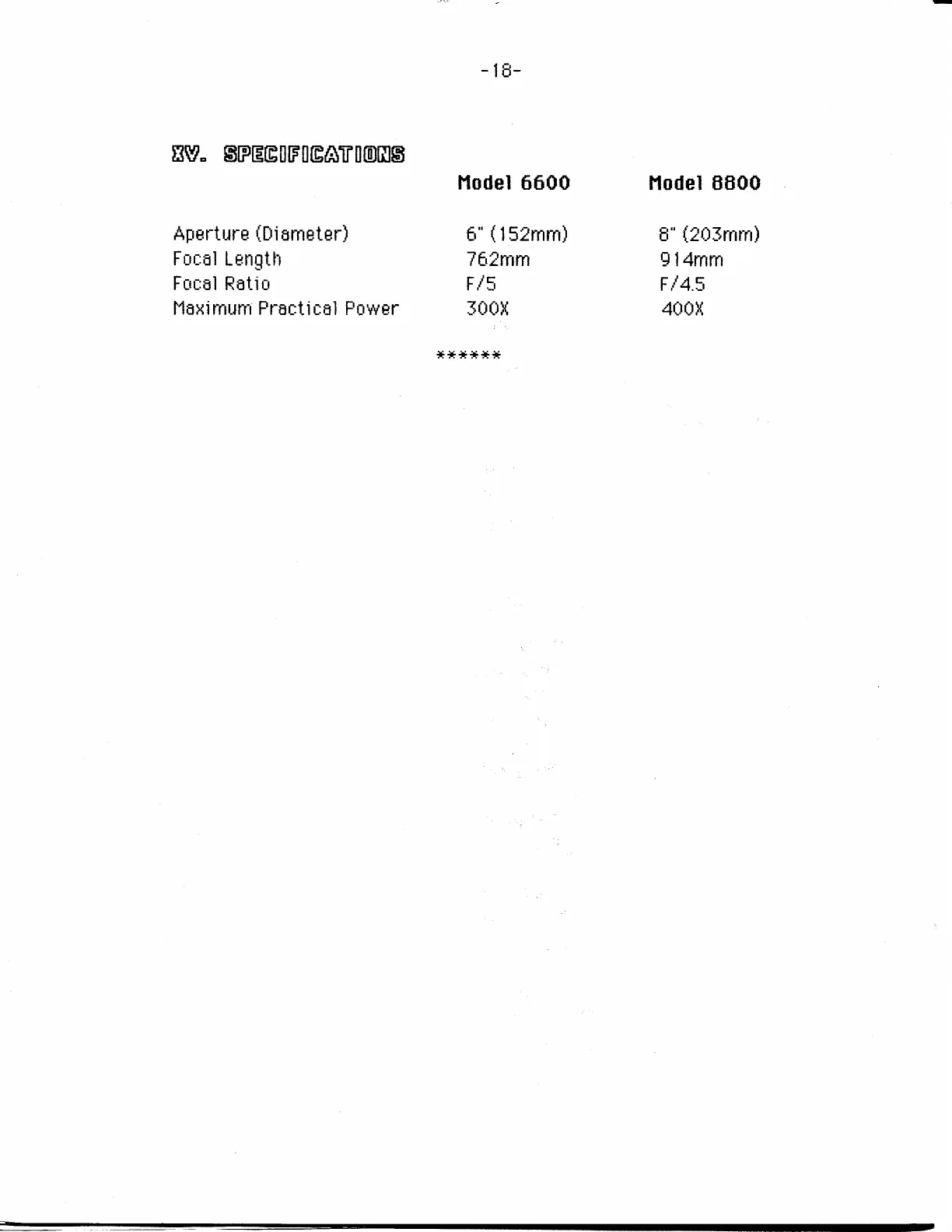 Meade 6600 - XV. Specifications