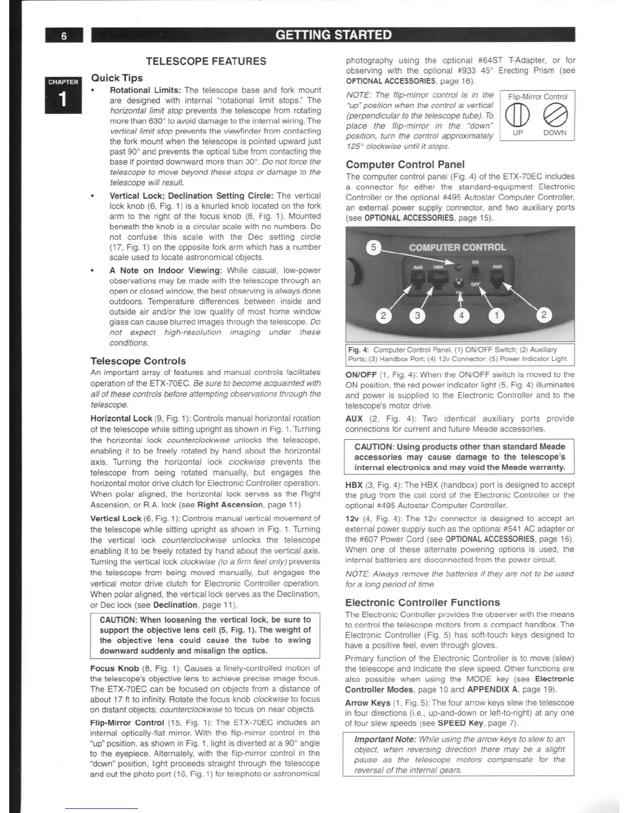 Meade ETX-70EC - Quick Tips; Telescope Controls; Computer Control Panel; Electronic Controller Functions