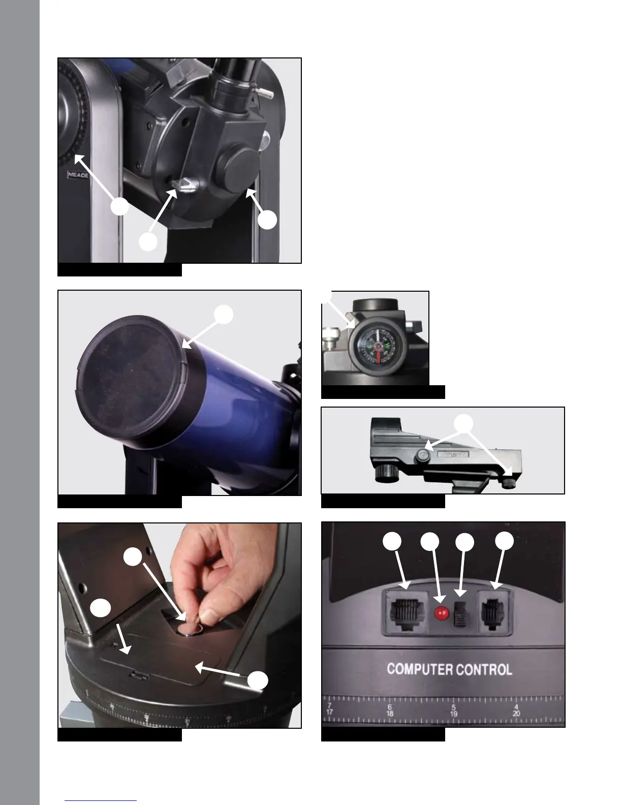 Declination (Dec.) Setting Circle (on left fork arm)
