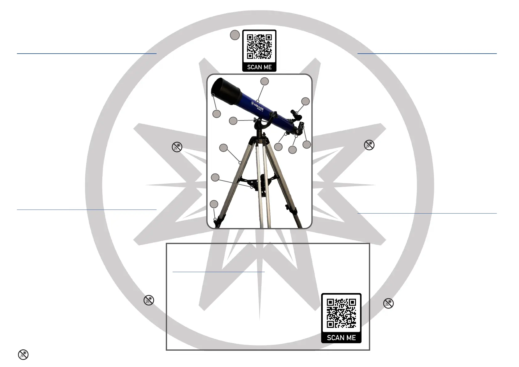 Looking at or near the Sun will cause irreversible damage to your eye. Do not point this telescope at or near the Sun.