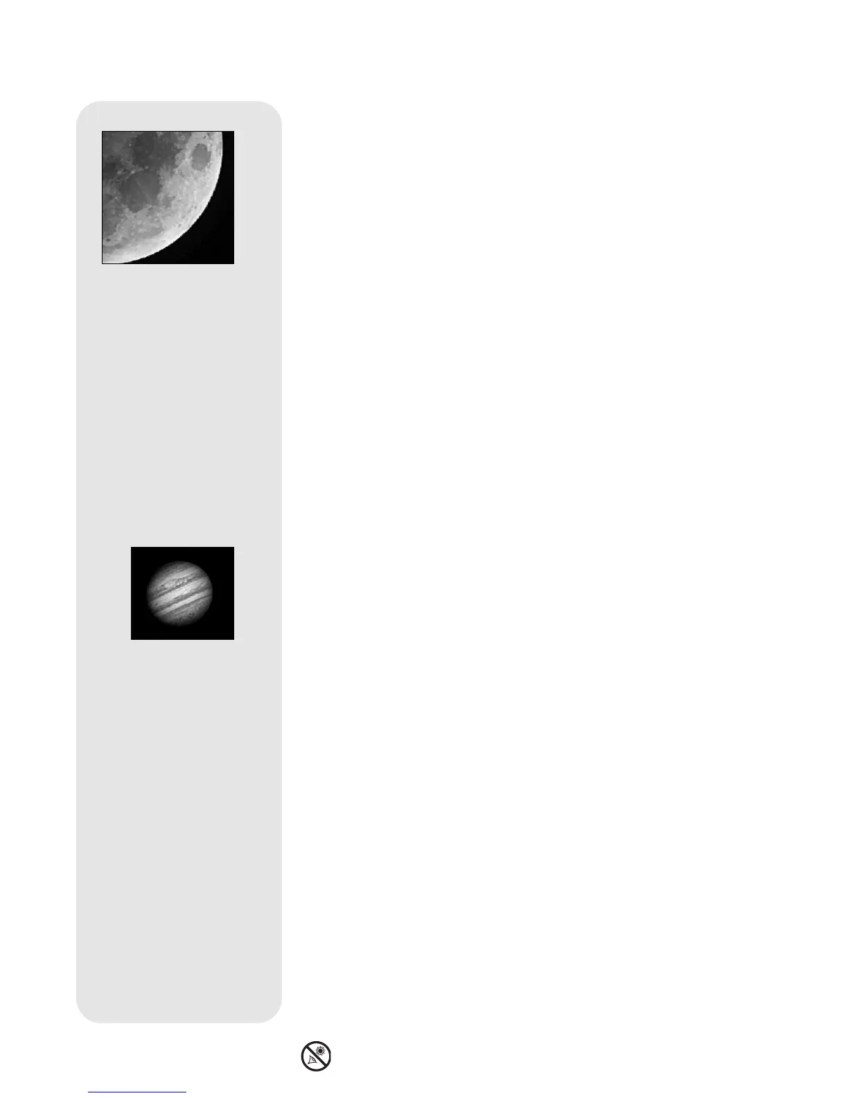this telescope at or near the Sun. Do not look through the telescope as it is moving.