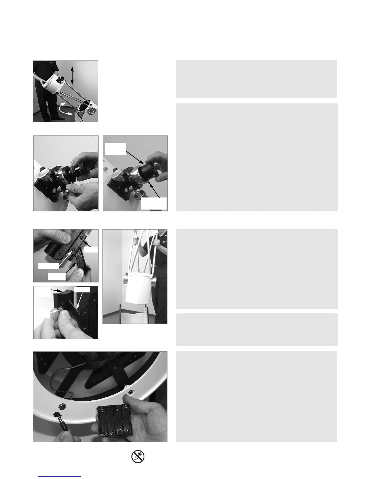 left). Slide the 2 inch eyepiece into the focuser and tighten with