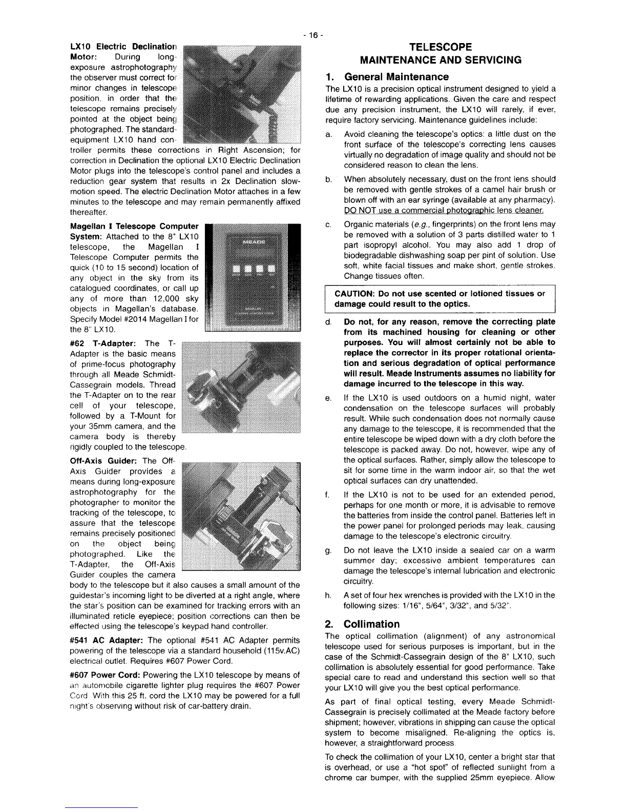 Meade LX10 - TELESCOPE MAINTENANCE AND SERVICING; General Maintenance and Cleaning