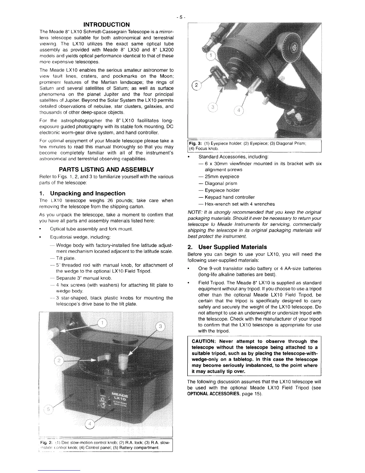 Meade LX10 - INTRODUCTION; Product Overview and Features; Parts Listing and Assembly