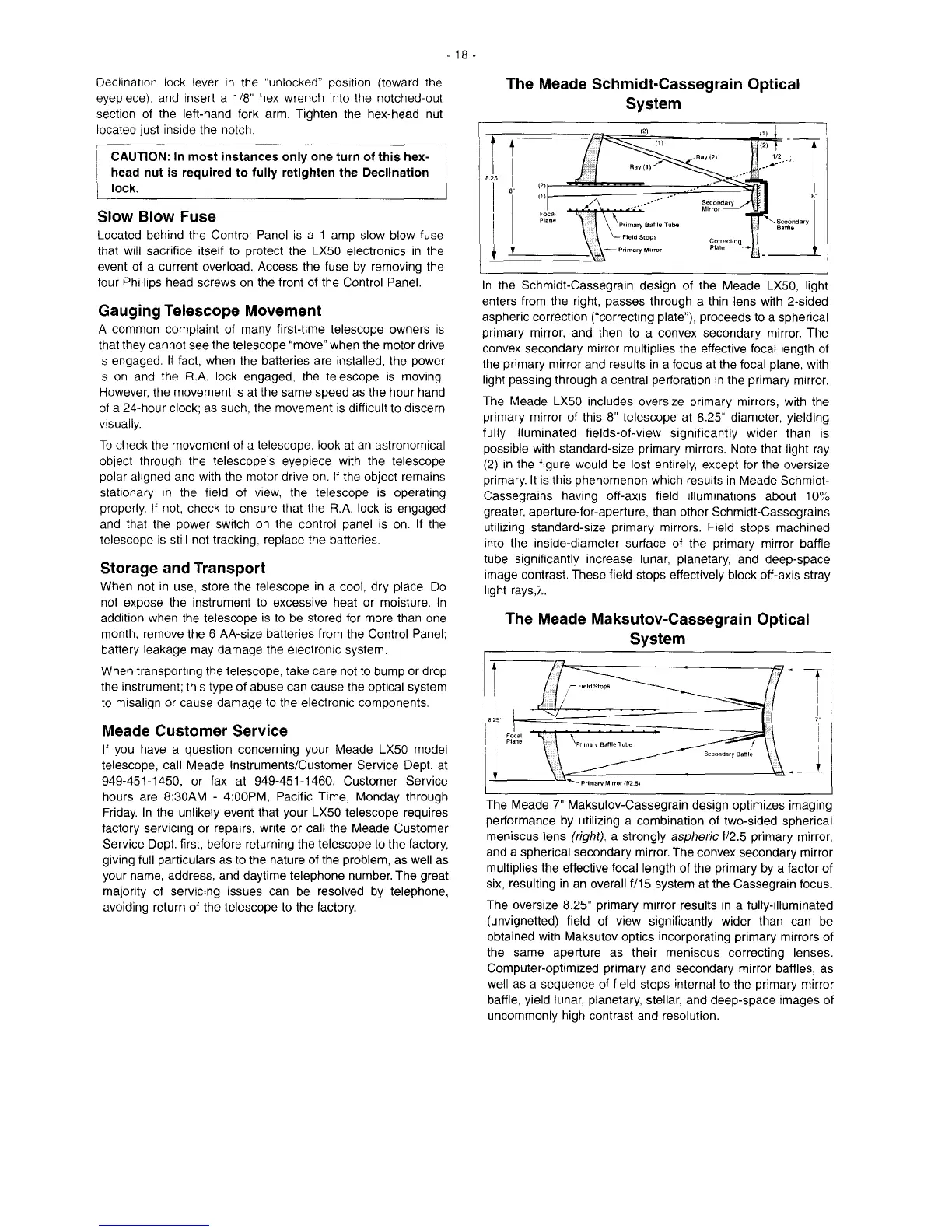Meade LX50 - Gauging Telescope Movement; Storage and Transport; The Meade Schmidt-Cessegrain Optical System; The Meade Maksutov-Cassegrain Optical System