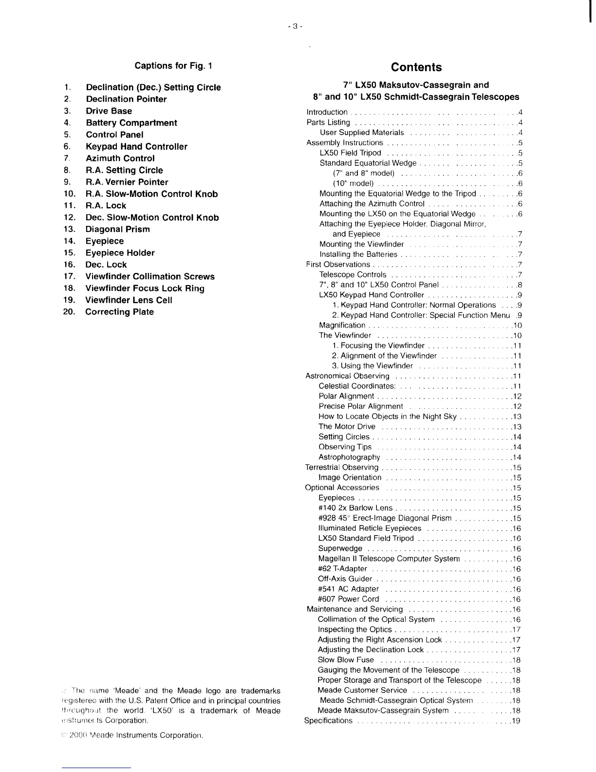 Meade LX50 - Contents; Captions