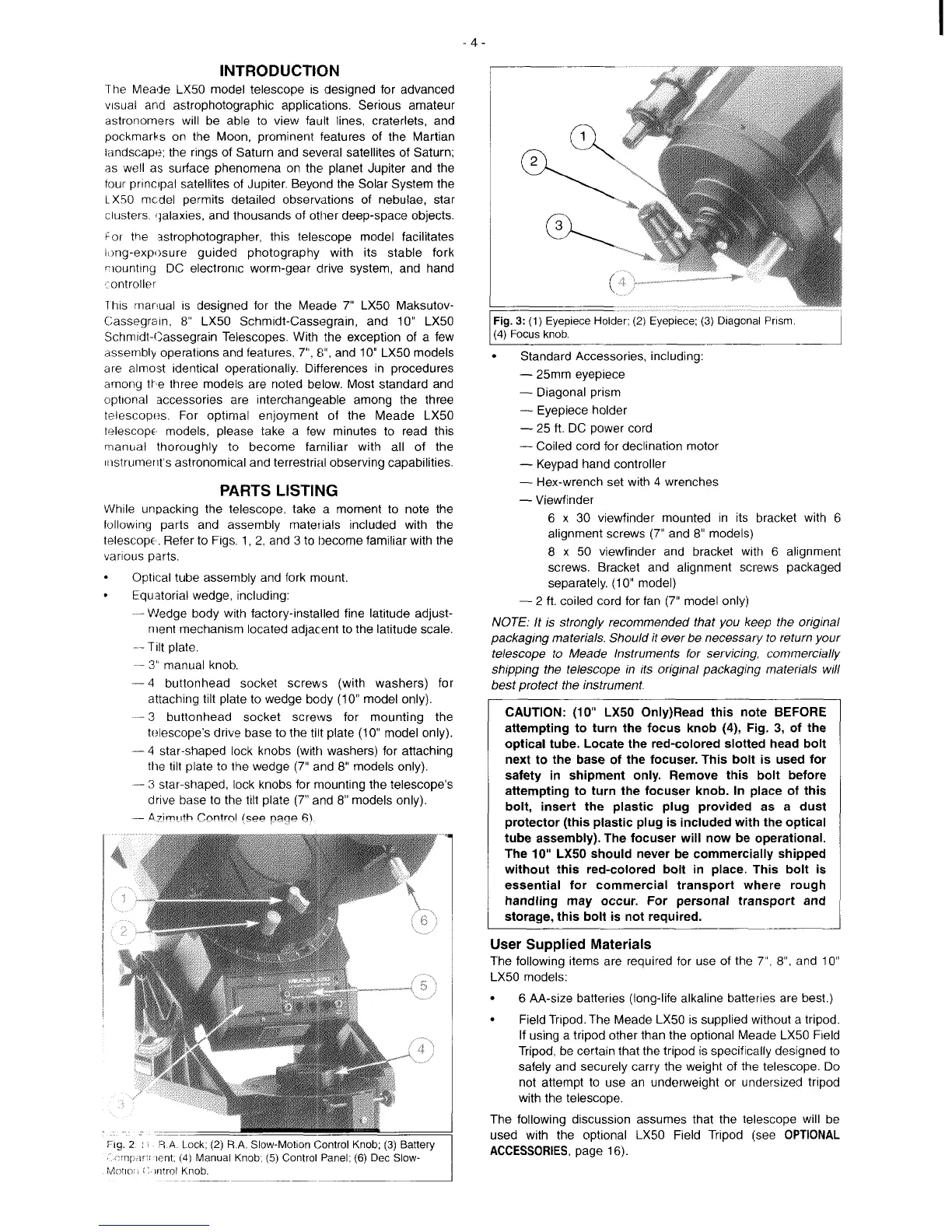 Meade LX50 - Introduction; Parts Listing; User Supplied Materials