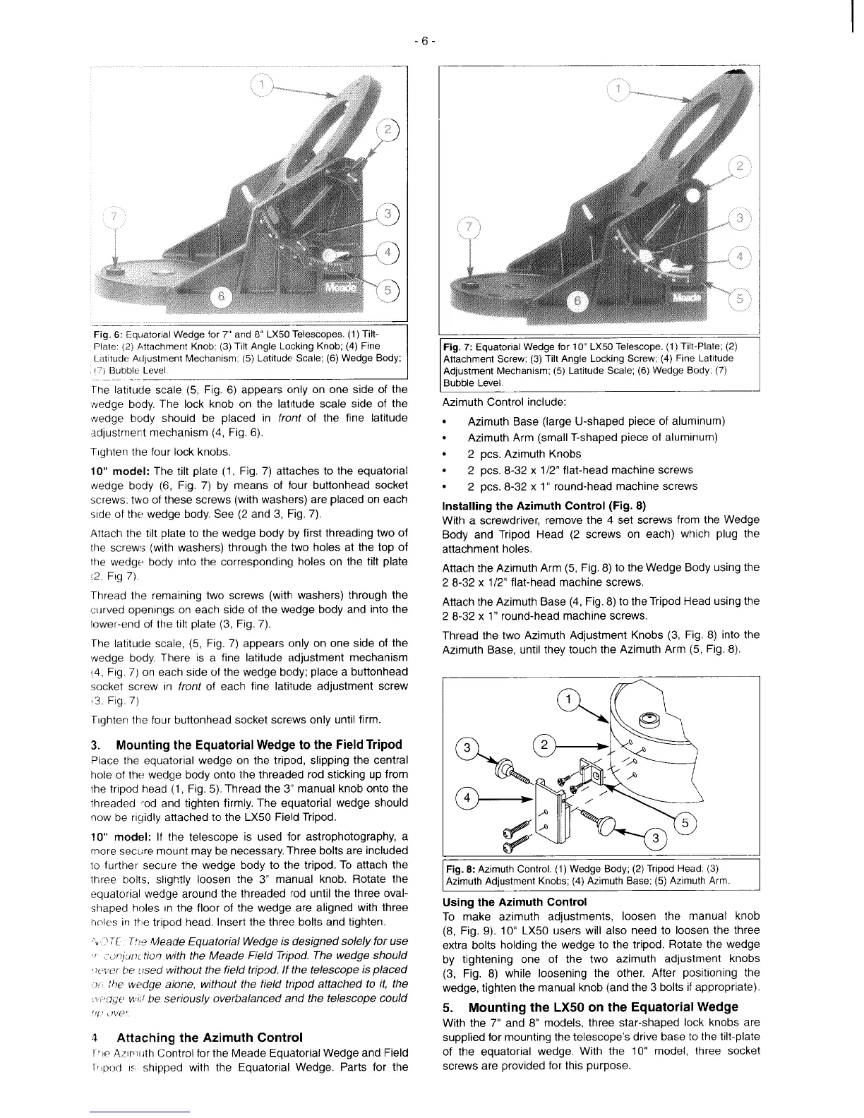 Meade LX50 - Mounting Wedge to Tripod; Attaching Azimuth Control; Mounting LX50 on Wedge