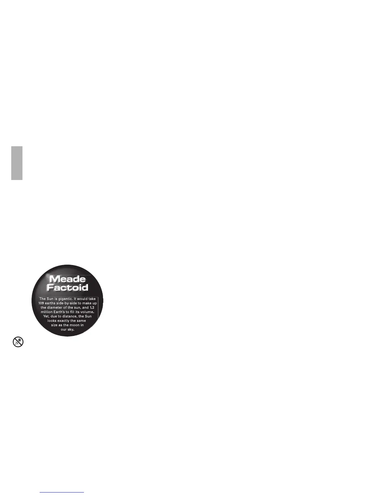 Looking at or near the Sun will cause irreversable damage to your eye. Do not point this telescope at or near the Sun. Do not look through the telescope as it is moving.