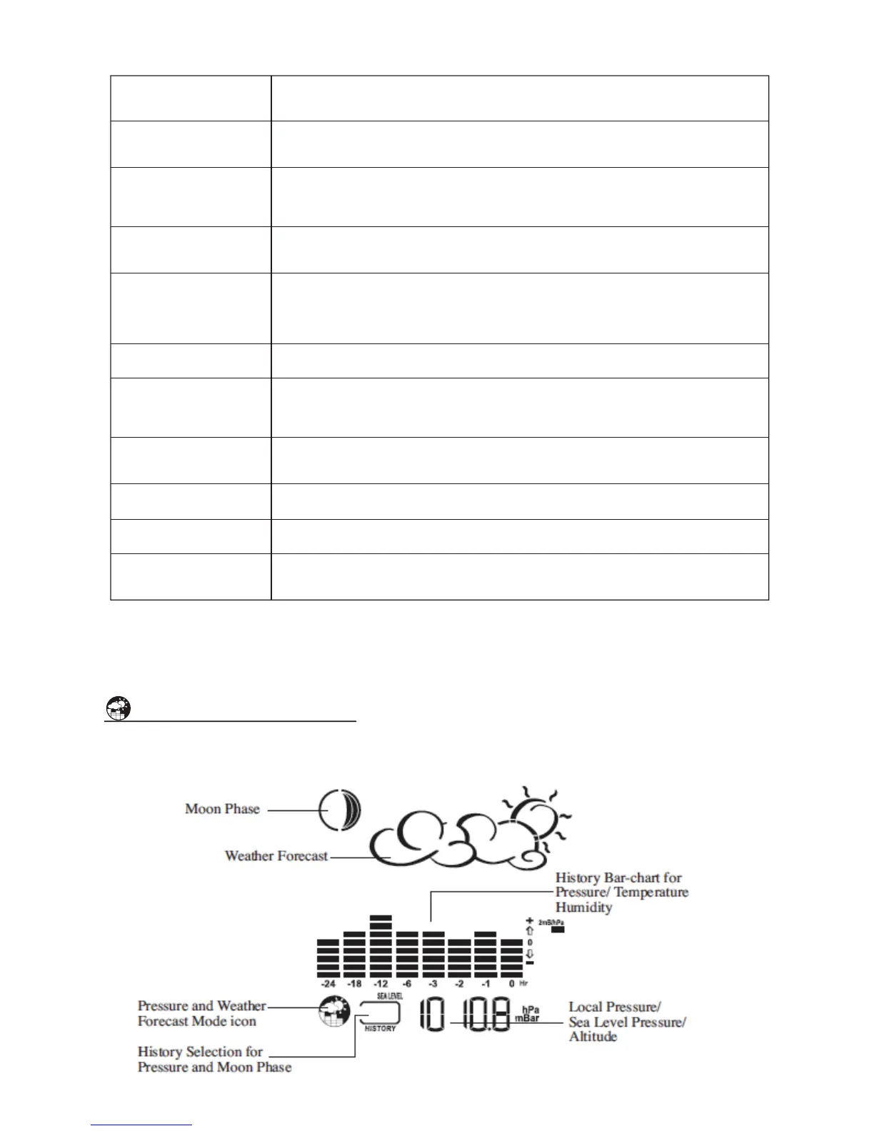 - Press and hold in pressure and forecast mode, to view different bar charts