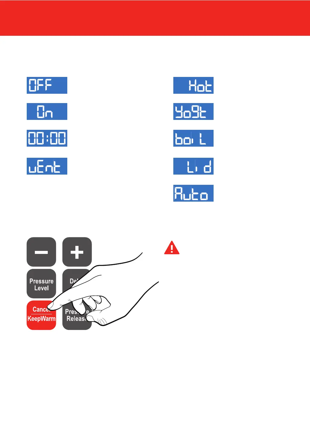 the most common messages/displays you’ll see on your MultiPot LCD screen: