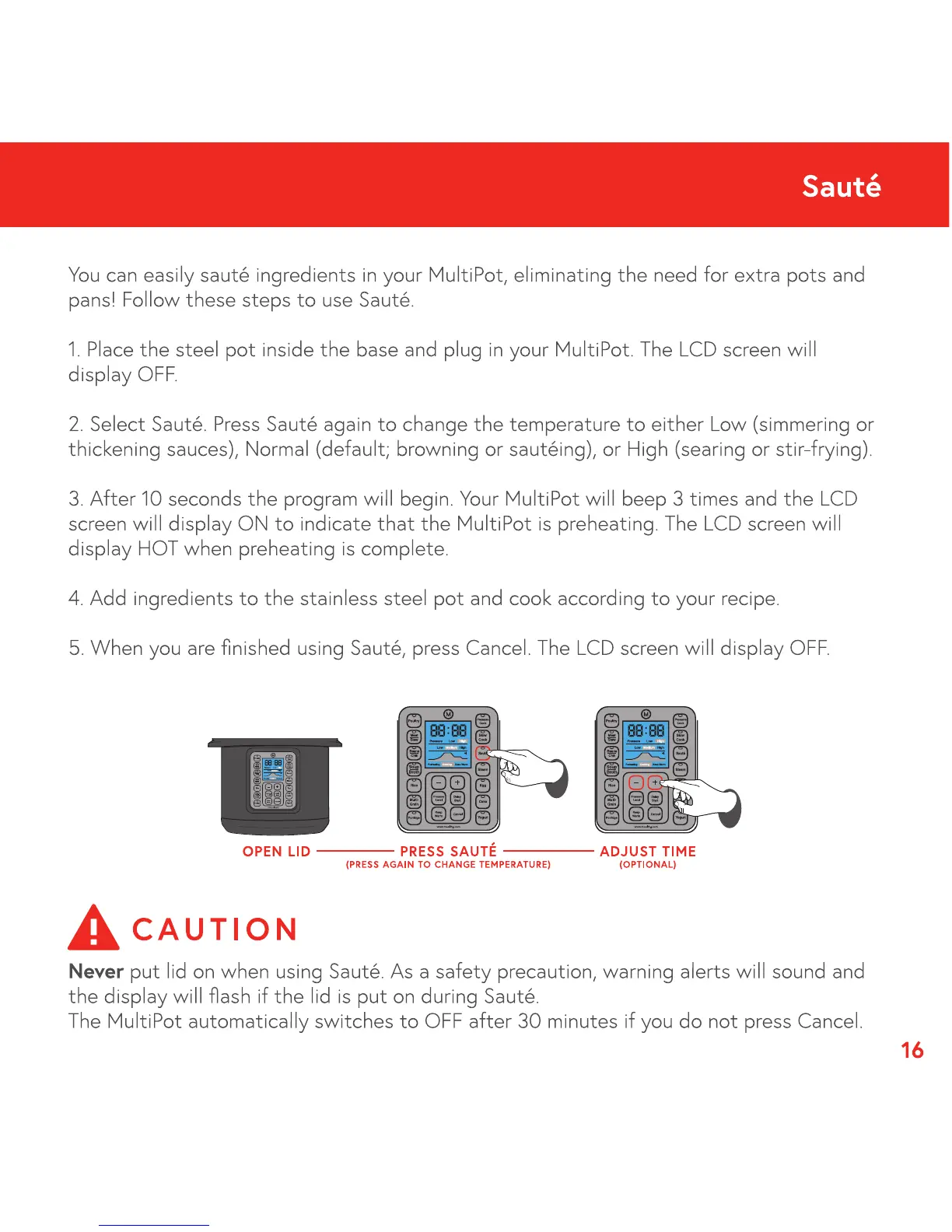 Mealthy MultiPot - Sauté; Using the Sauté Function