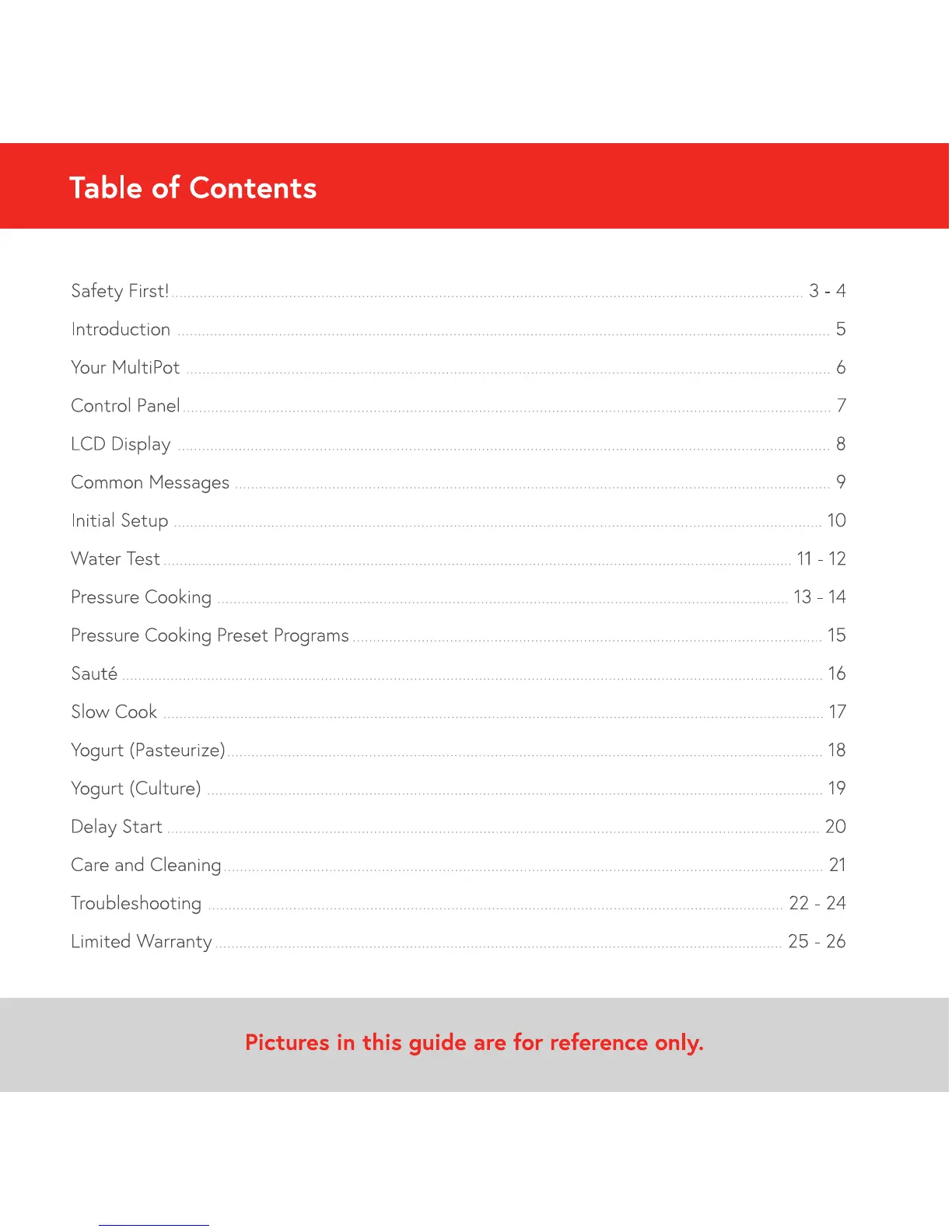 Mealthy MultiPot - Table of Contents