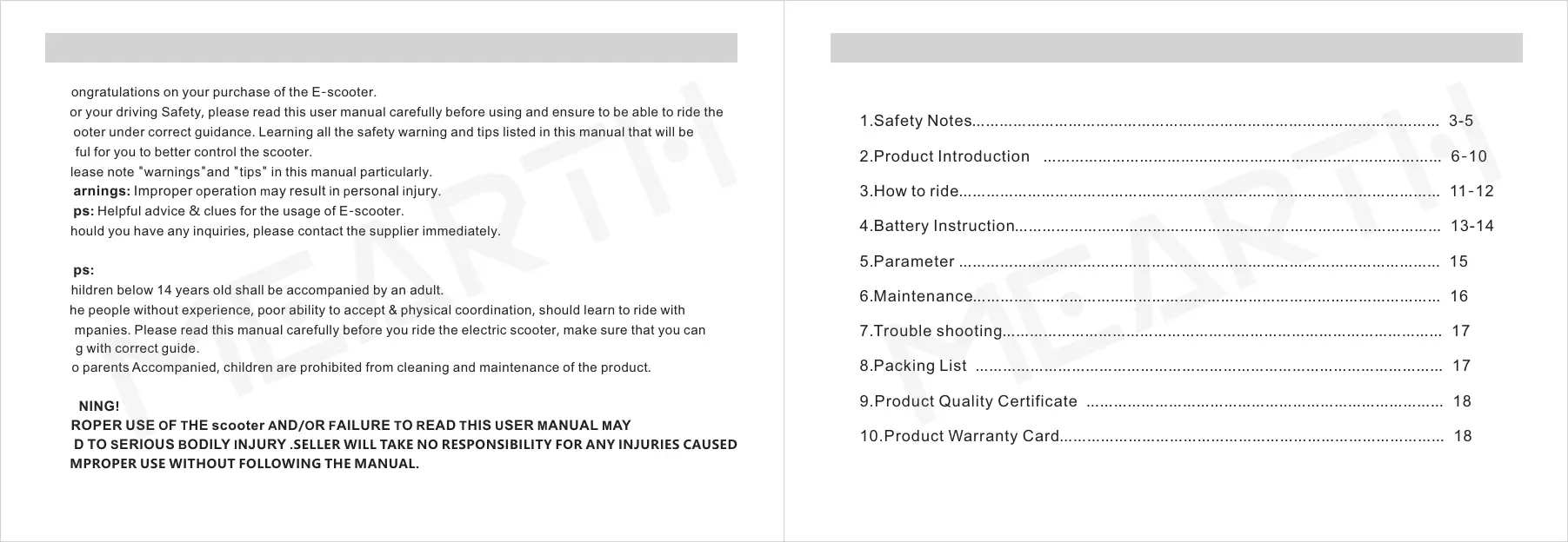 ● For your driving Safety, please read this user manual carefully before using and ensure to be able to ride the