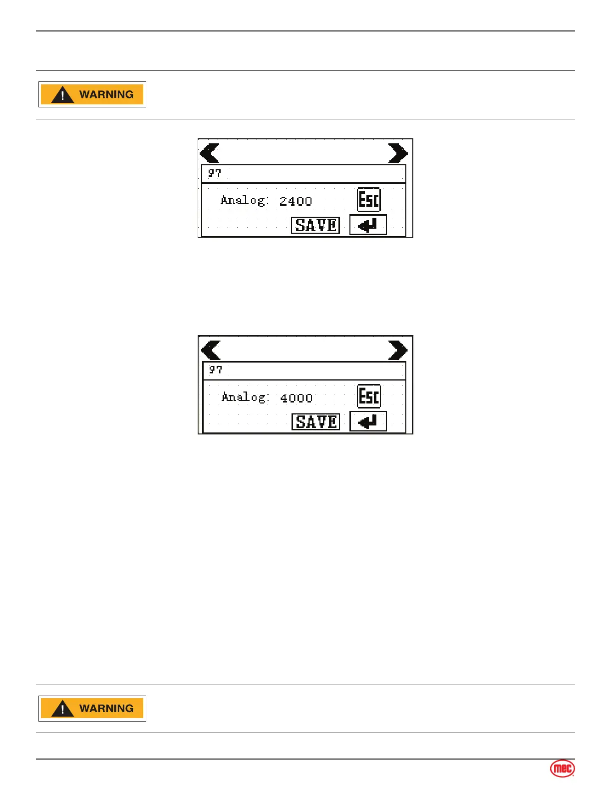 ALL SYSTEM SAFETIES ARE DISABLED WHEN IN CALIBRATION MODE.