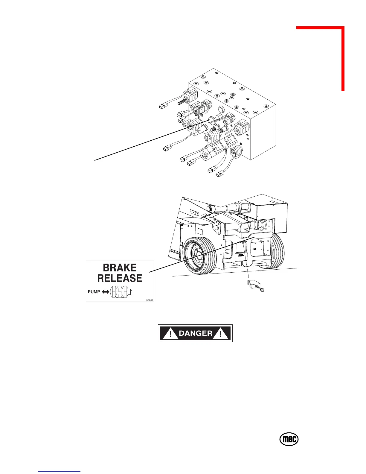 DO NOT DRIVE MACHINE WITH BRAKES RELEASED.