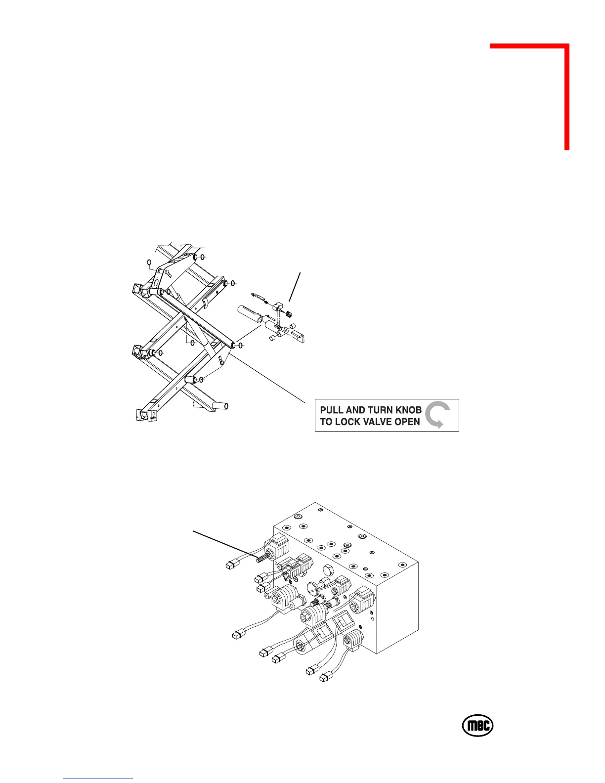 2. Pull manual activator (override valve) on main manifold to lower platform to