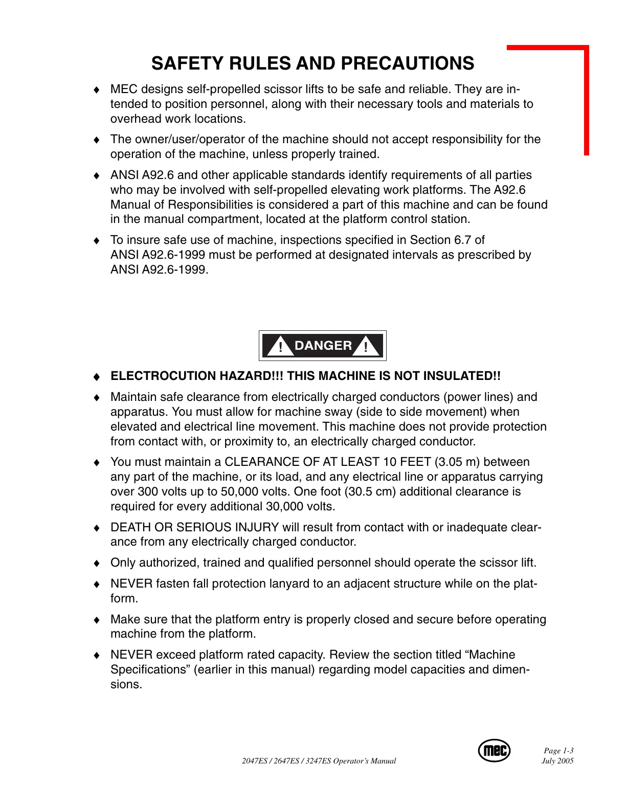 ♦ MEC designs self-propelled scissor lifts to be safe and reliable. They are in-