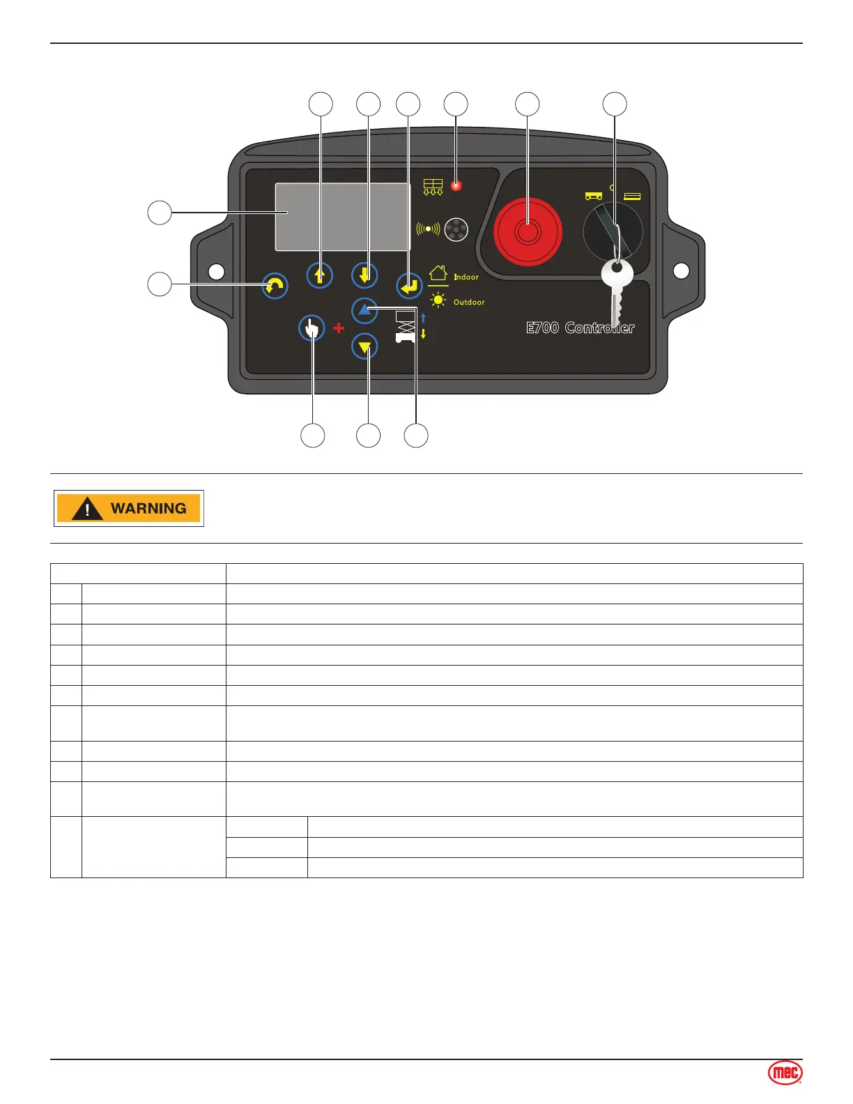 6 Overload Indicator Light Light on indicates when platform is overloaded.