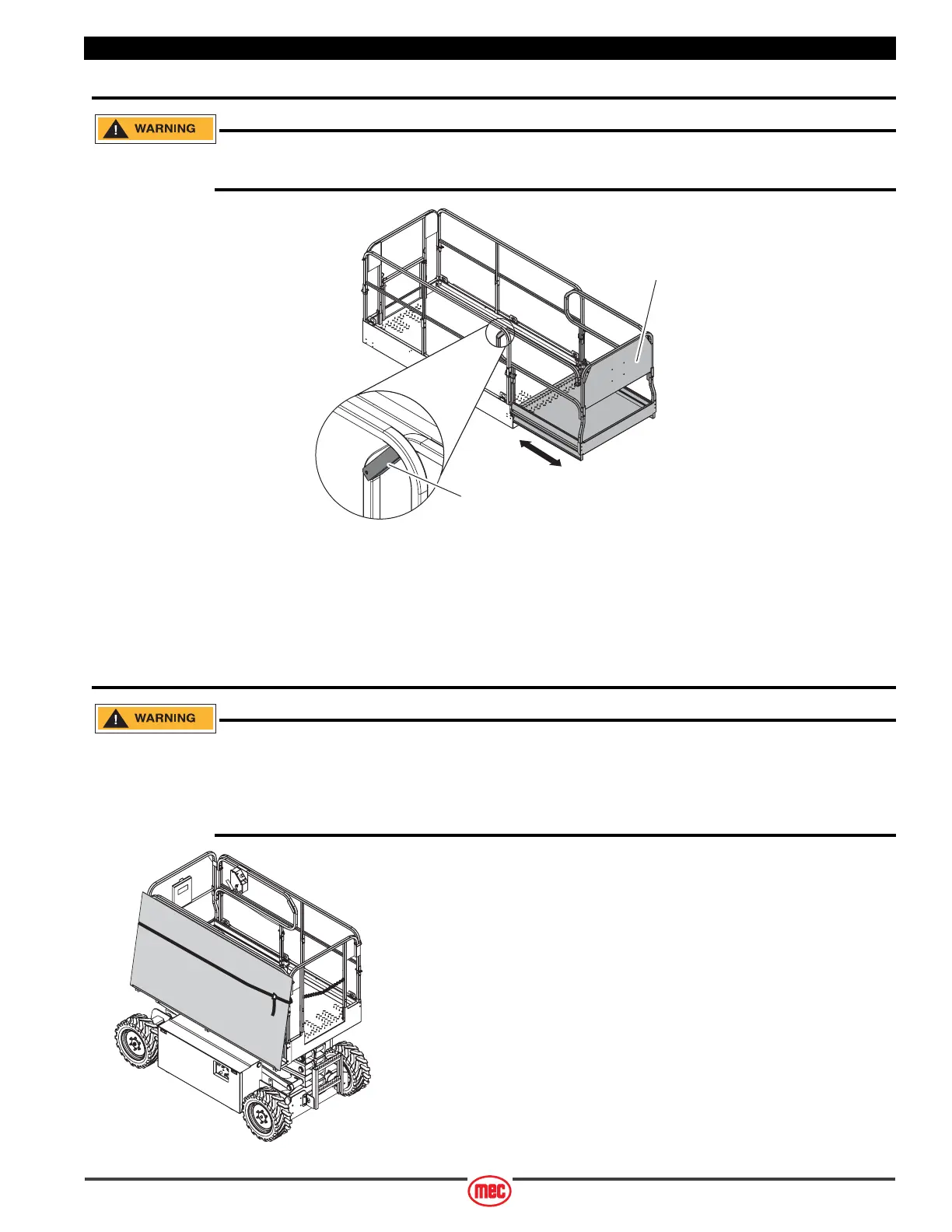 DO NOT use with optional 55” wide platform. DO NOT lift or attach material to the outside of the