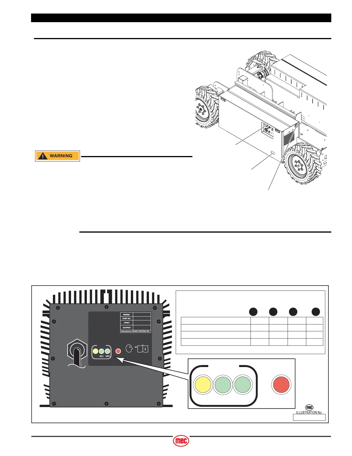 Battery charger LEDs can be viewed through a window in the door of