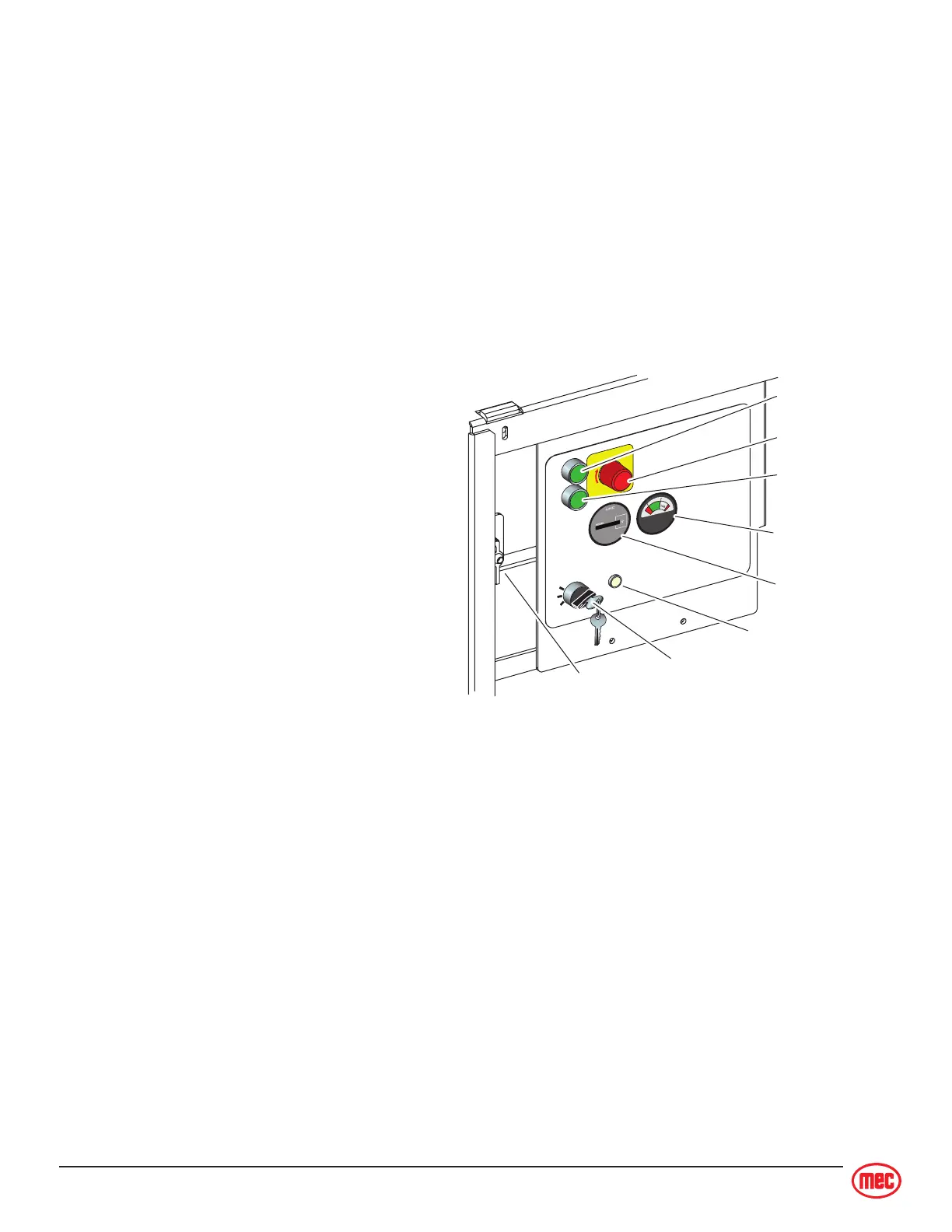 trols, thereby stopping all machine functions. Press the switch to stop all electrical power and turn the