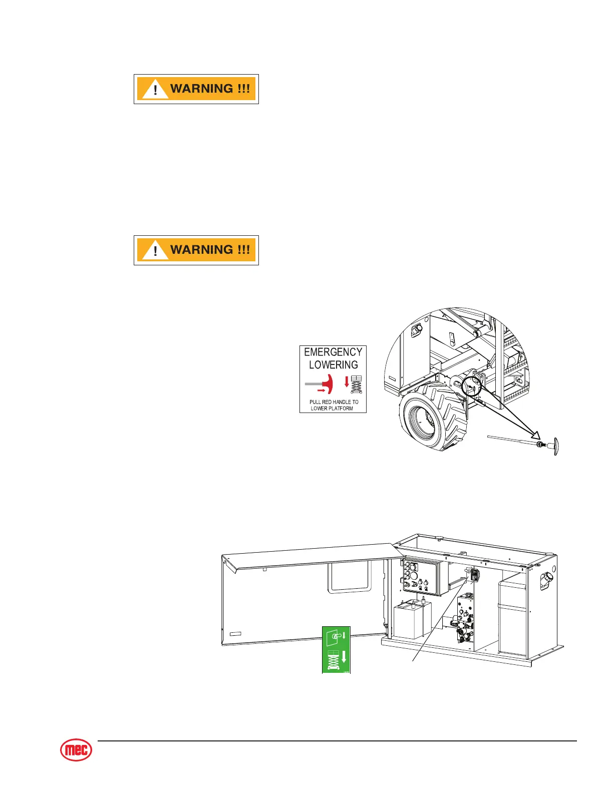 The Emergency Down System is used to lower the platform in case of power or valve failure. To