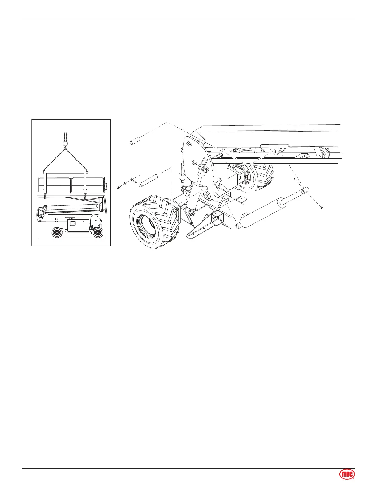 Remove the bolt and nut that secure the cylinder head to the mounting pin on the boom