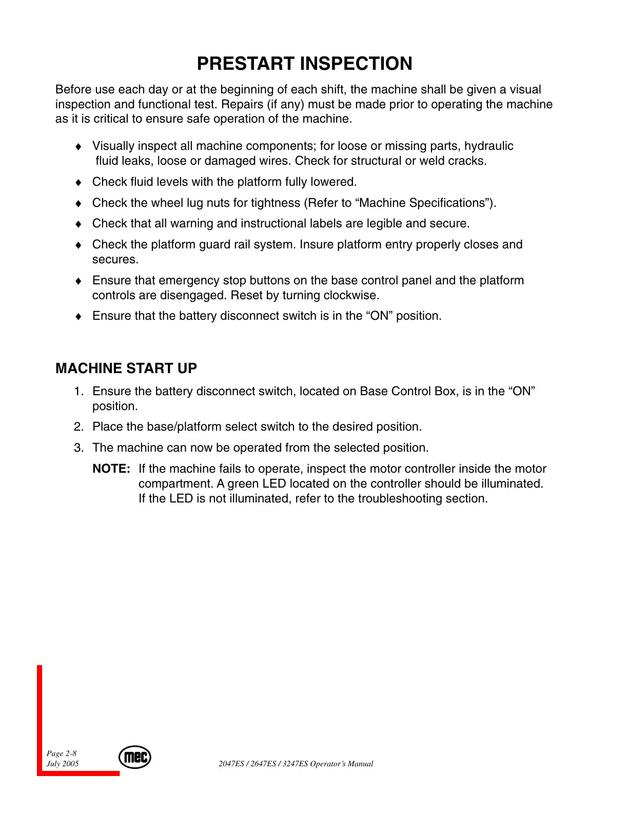 inspection and functional test. Repairs (if any) must be made prior to operating the machine