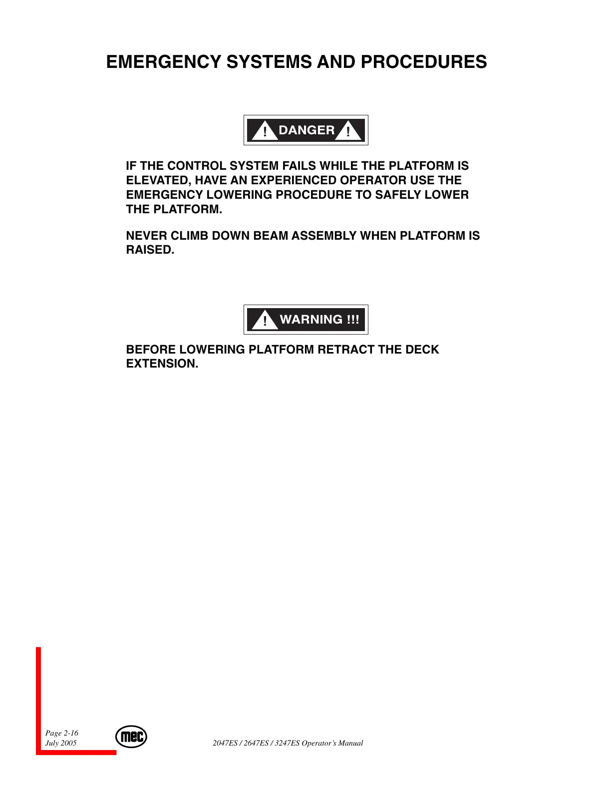 EMERGENCY LOWERING PROCEDURE TO SAFELY LOWER