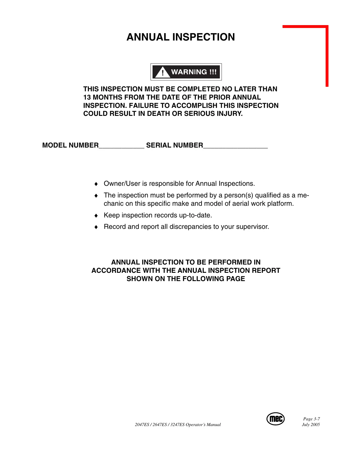 ANNUAL INSPECTION TO BE PERFORMED IN