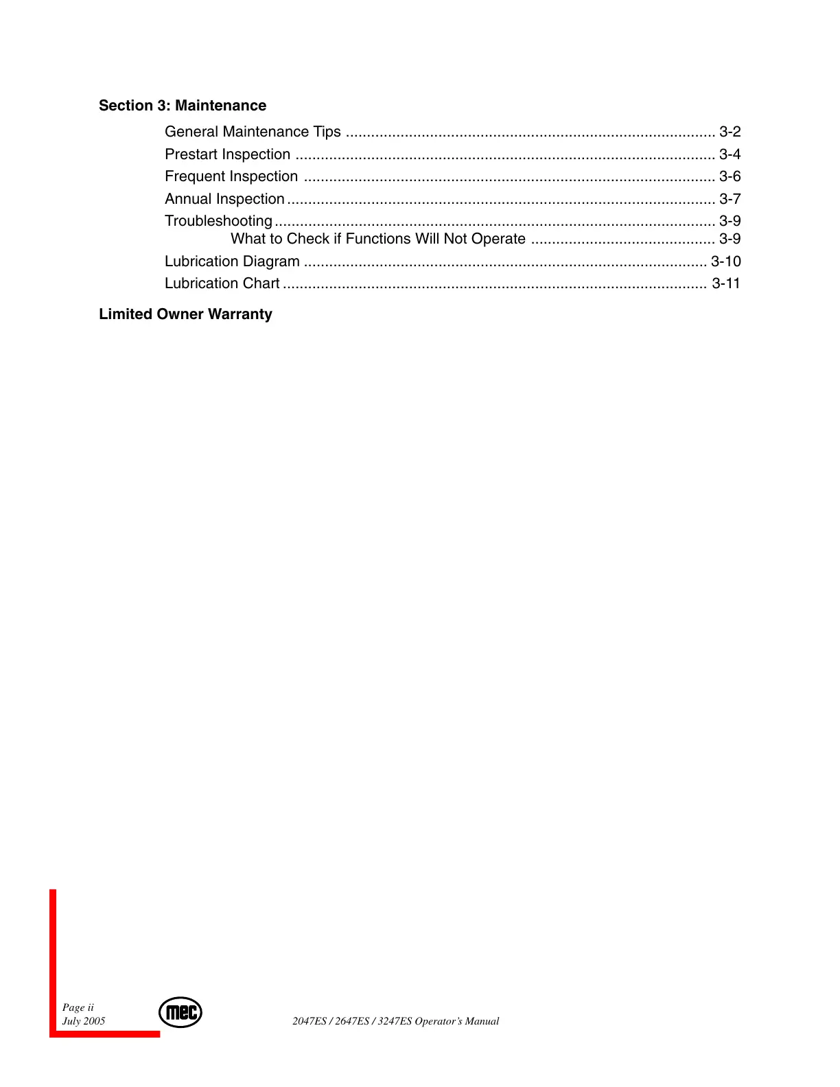 July 2005 2047ES / 2647ES / 3247ES Operator’s Manual
