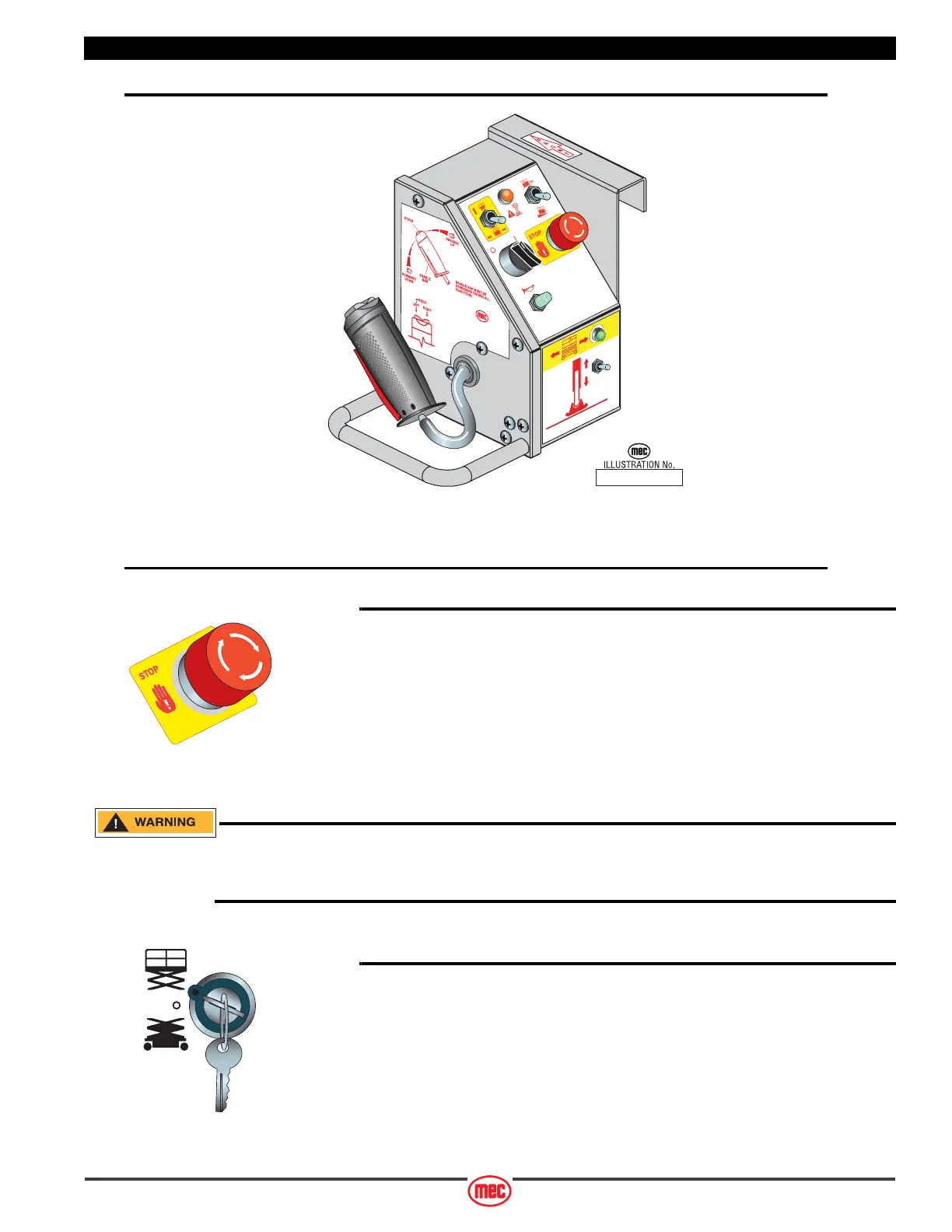 Activation of the EMERGENCY STOP switch will apply brakes immediately. This may cause unexpected